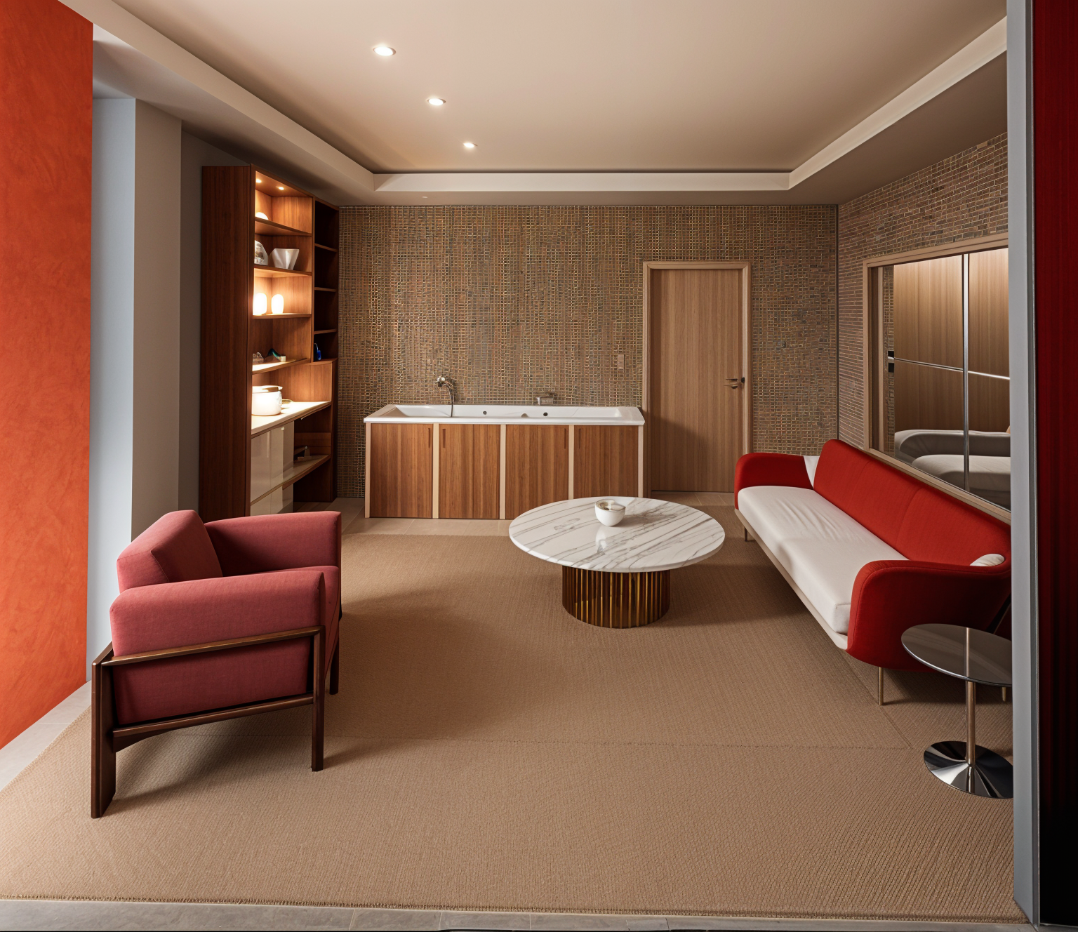 aerial shot render the civil engineering drawing showcasing a residential plot layout use a soft warm palette to enhance the blueprint with pastel blues and greens for lines and shading add earth tones to the map area in the top right corner using muted oranges yellows and browns to indicate different zoning areas highlight the plan s key areas in a gentle golden hue for emphasis render the environment with a serene and professional atmosphere ensuring the text is clear and the lines are precise