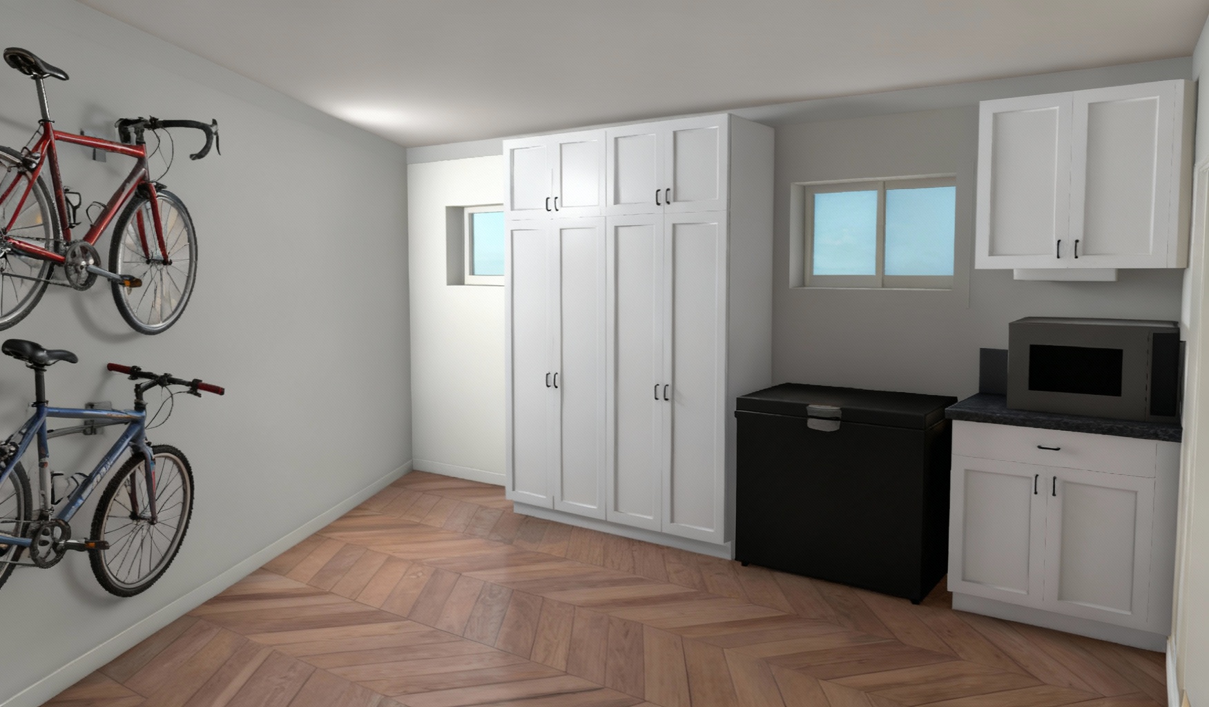 put a matte finish on the floor and make painted cabinetry similar to sherwin williams iron ore