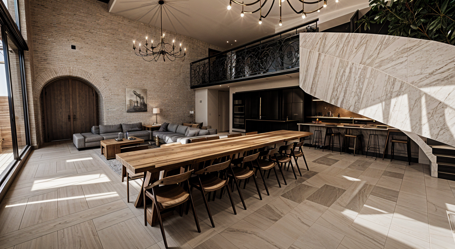 convert this floor plan into a modern isometric 3d view of a full house show the space from an elevated angle with furniture walls and details visible