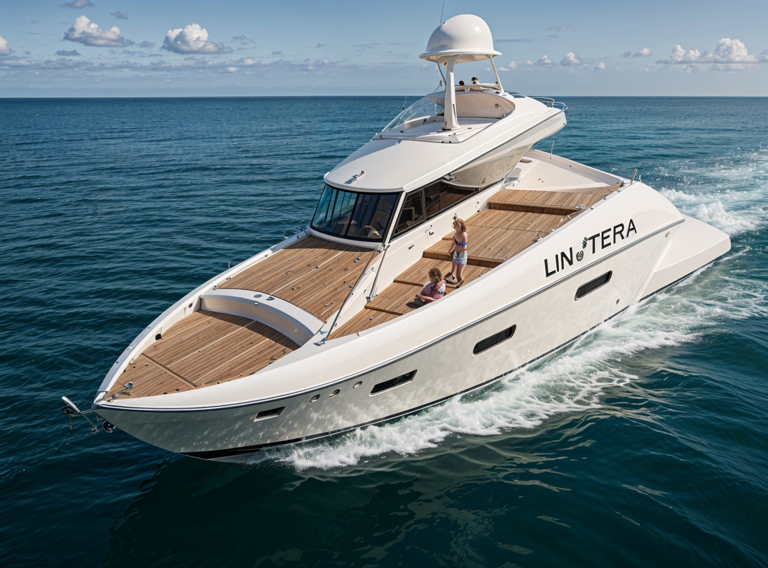 the name of the yacht sholud be lintera please without name put some golden ditails on the shape of the yacht make much biger size of the yacht