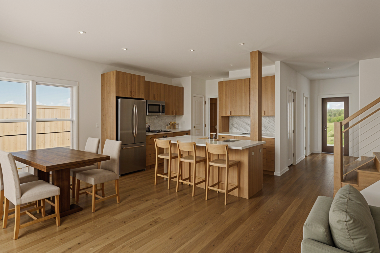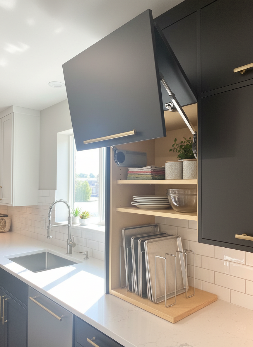 add more natural light make the area on the right a dining room change the ceiling to drywall put cookie sheets vertically in the metal dividers stage the shelves