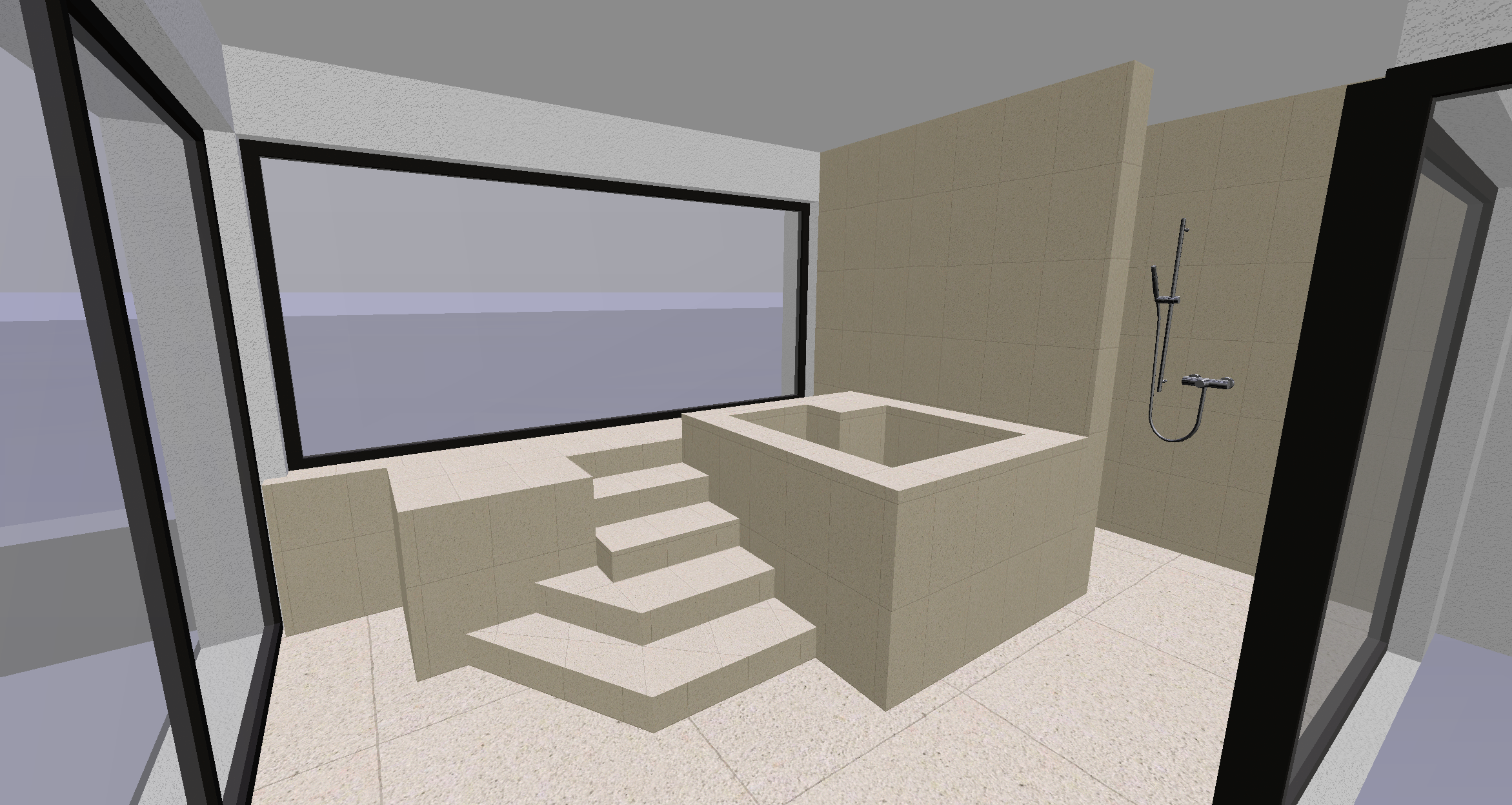 genau dieses rendering berarbeiten fotorealistisches innenraum foto exakt dieselbe perspektive und kameraposition wie das hochgeladene referenzbild 100 identische raumgeometrie im aussenbereich kleinst dtische gewerbeumgebung durch die fenster drei etagen tiefer sichtbar rechts hinten ist die dusche auf der linken seite eine treppe mit indirekter beleuchtung der untersten zwei tritte vollfl chige horizontale jalousien ausserhalb der fenster beim fenster in front sind die jalousien komplett unten alle beigen w nde und der beige boden ist homogener hellbeiger kalkstein visso montenegro platten 80x40 cm alle anderen w nde und die decke sind weissputz ral 9016 das fenster in front hat auf beiden seiten einen transparenten raumhohen beigen vorhang beim fenster auf der linken seite ebenfalls ein raumhoher vorhang rechts hinter der badewanne tauchbecken ein modernes bild an der wand am boden steht vorne im bild auf der linken seite eine grosse moderne topfpflanze auf der linken seite hat es auf dem podest b cher und accessoires eine sehr h bsche asiatische frau um 25 sitzt im mit wasser gef llten tauchbecken raum zus tzlich k nstlich ausleuchten mit schwarzen runden deckenspots sanfte realistische schatten weiches nat rliches tageslicht mit schatten der jalousien an den w nden dusche hinten auf der rechten seite hell ausleuchten ganz rechts im bild ist die sauna sichtbar realistische materialien hochwertige oberfl chenreflexionen nat rliche farbwiedergabe golden hour feeling hell ausleuchten das bild muss wie eine professionelle fotografie aussehen es soll ein echtes und reales foto sein canon eos r5 35 mm festbrennweite f 2 8 hyperrealistisch dslr qualit t raw aufnahme 8k aufl sung extrem scharf perfekte tiefensch rfe professionelle architekturfotografie