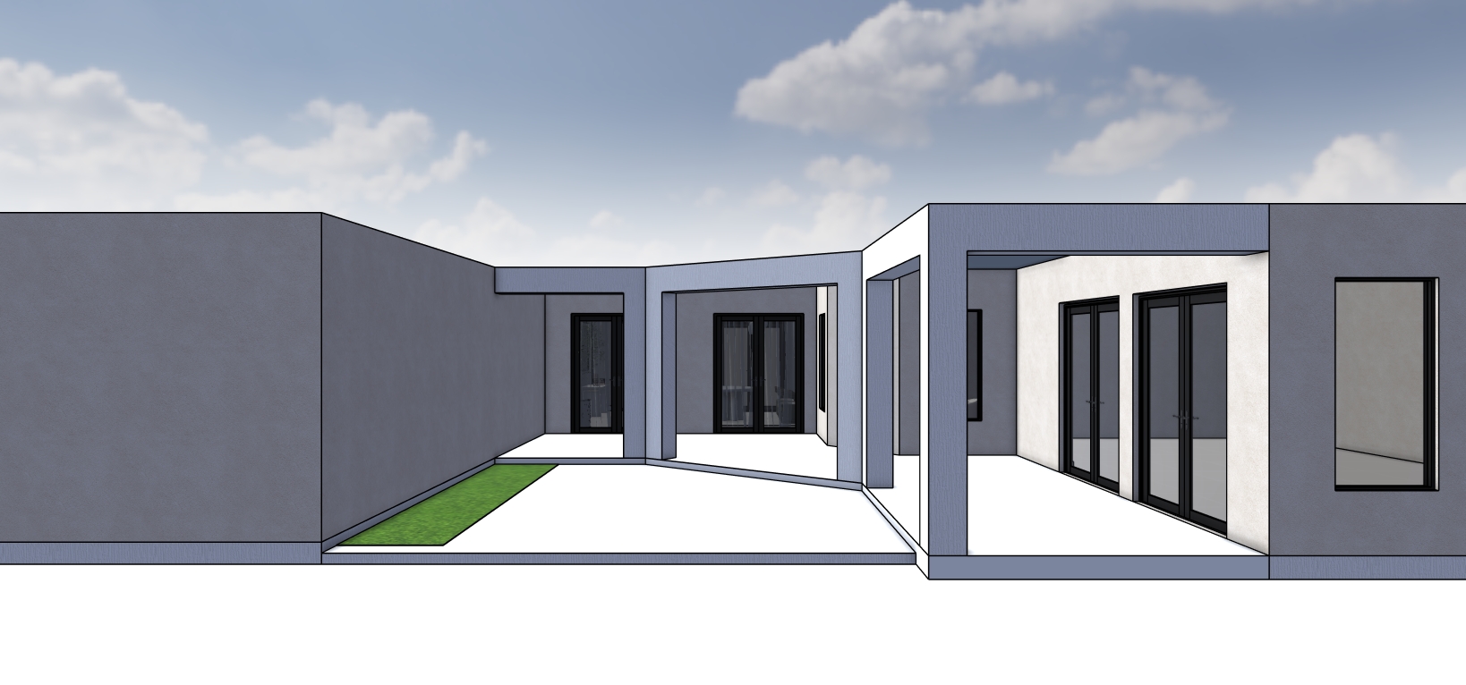 edit this backyard area and transform it into a modern fire pit lounge area using the existing trapezoid shaped space of the patio as the main layout guide create a custom fire pit centered within the trapezoidal footprint with built in seating or modern outdoor chairs arranged to fit the geometry of the space upgrade the entire patio with high end materials large format concrete or porcelain pavers clean edges and a refined outdoor design add subtle warm lighting such as recessed floor lights indirect led accents and soft ambient illumination to create a cozy evening atmosphere enhance the surrounding environment to feel like a finished sophisticated patio modern landscaping minimal greenery and a balanced upscale outdoor aesthetic realistic materials natural lighting modern style high end residential backyard design