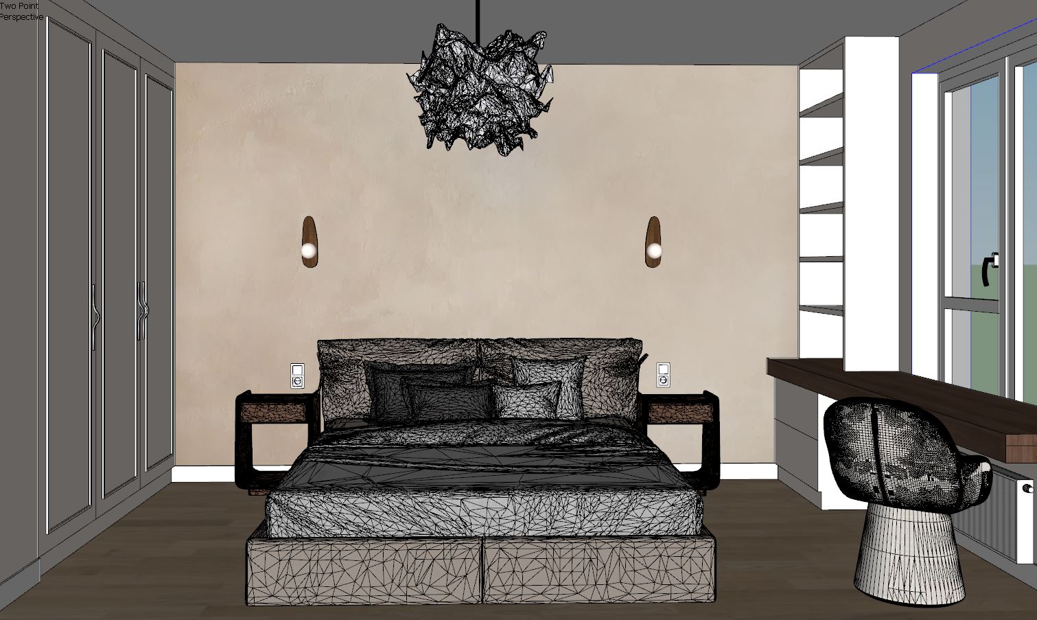 organic modern cozy bedroom ambient light on the wall behind the bed limewash paint texture