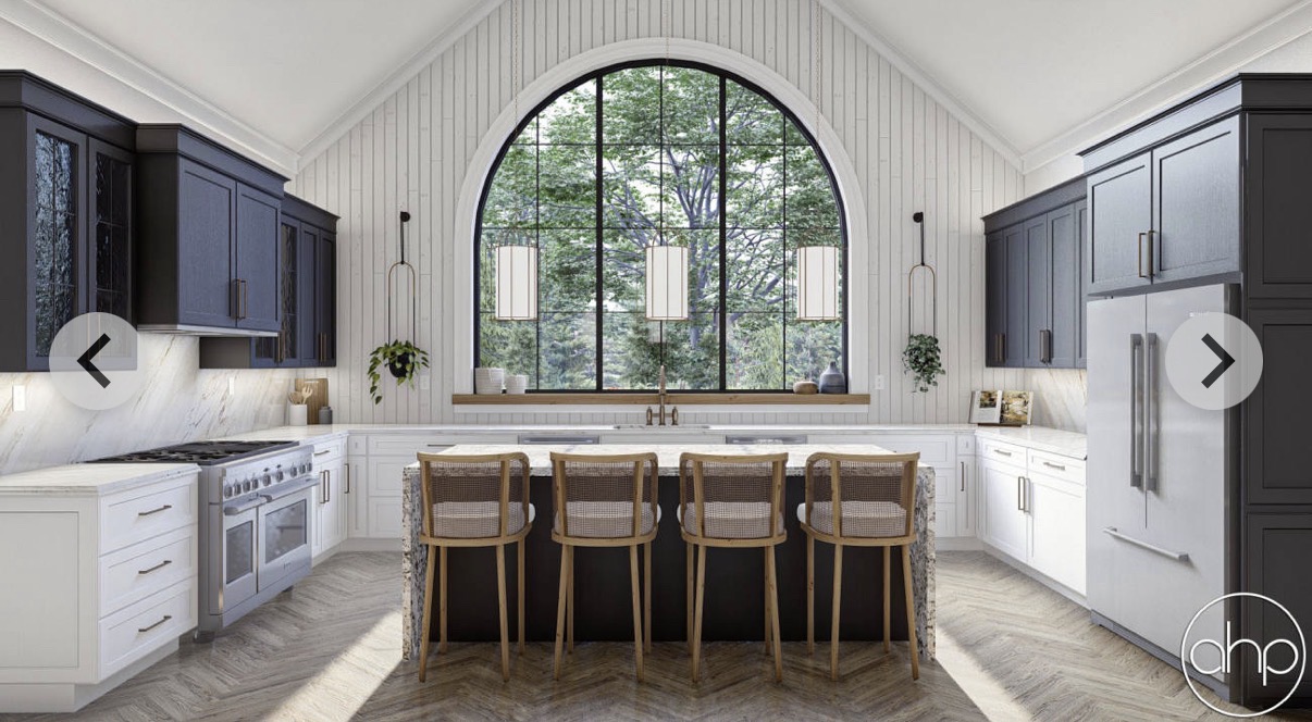 take this kitchen layout and add in an arched door way into a pantry on the left side at the edge of the wall the cabinets should remain and it show be a narrow arch