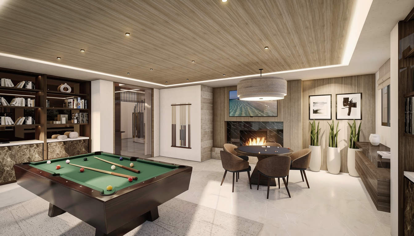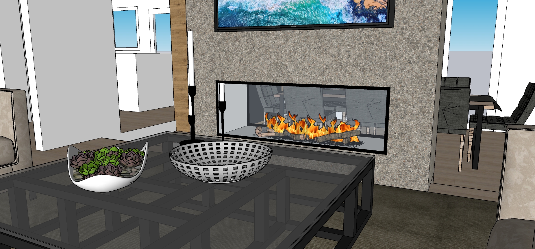 night view and light up the fireplace and make it