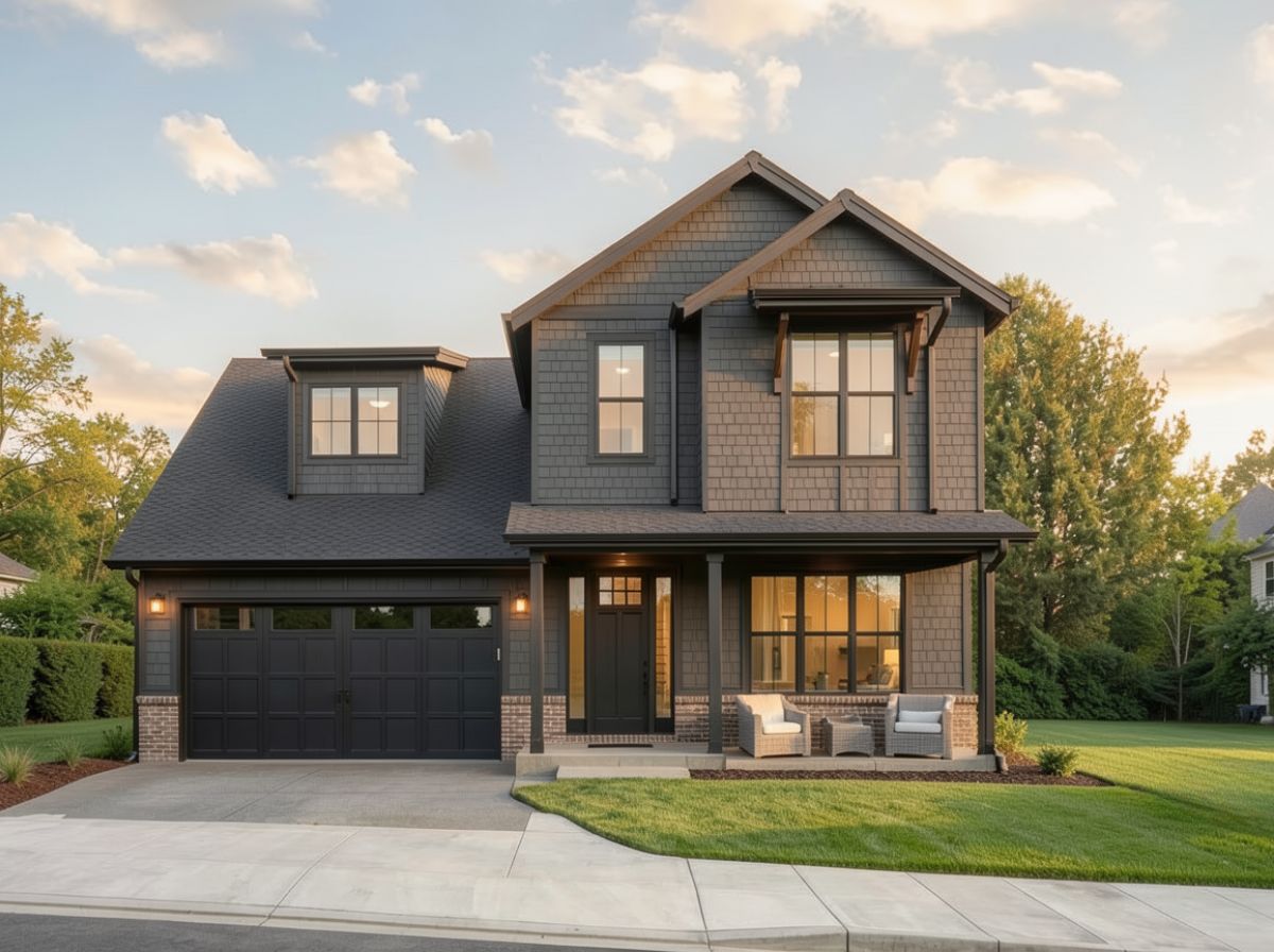 keep everything the same but add some white hydrangea a few smaller green shrubs along front of home