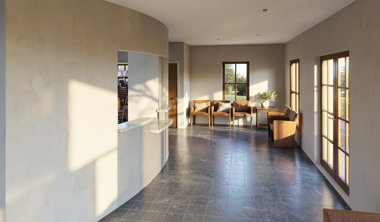 turn the attached sketchup rendering into a photoreal rendering of the house keep geometry massing window placement and details the same high fidelity and representation is important this should be a daylight overcast rendering of the house the foreground should be a hill up to the house the adjacent landscape should well established native plants to the sides and grass in the area directly in front of the house deciduous trees behind the house there is a concrete driveway to the right side maintain materials as shown white trim windows and doors and the two concrete stairs on the front and side of the porch should be painted gray the adjacent structure to the left is a blue craftsman one story house with white trim