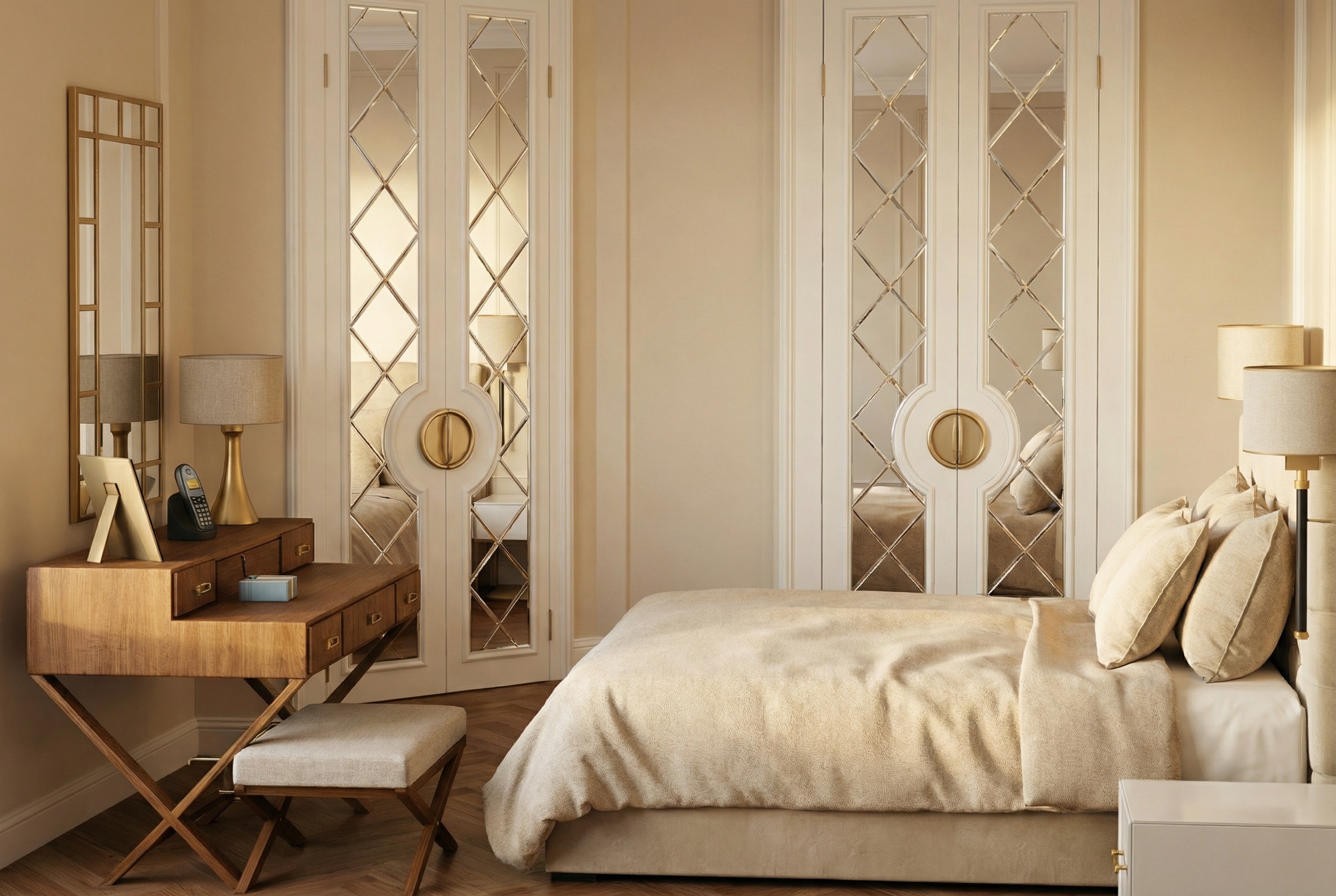 a panoramic window on the 12th floor of a building is reflected in the mirror