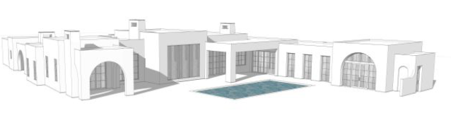 modern mediterranean with cream colored stucco and tan colored rock