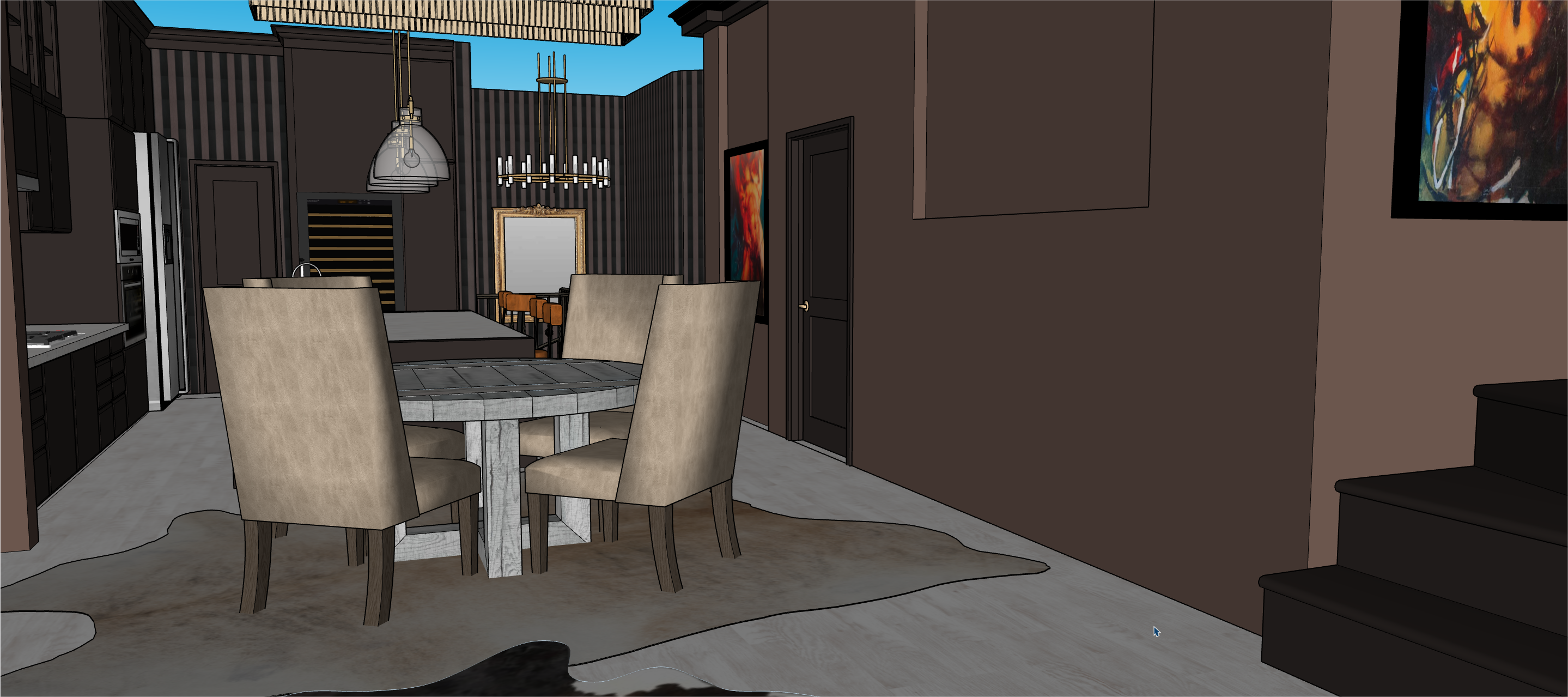 warm daylight lighting and the hide rugs on the ground should show texture