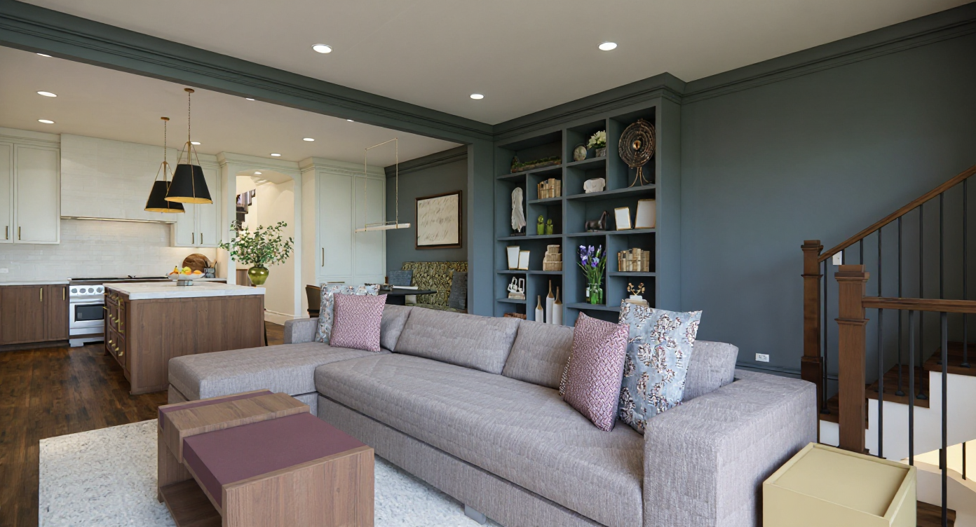 flooring is 5 white oak medium tone countertops are taj mahal quartzite