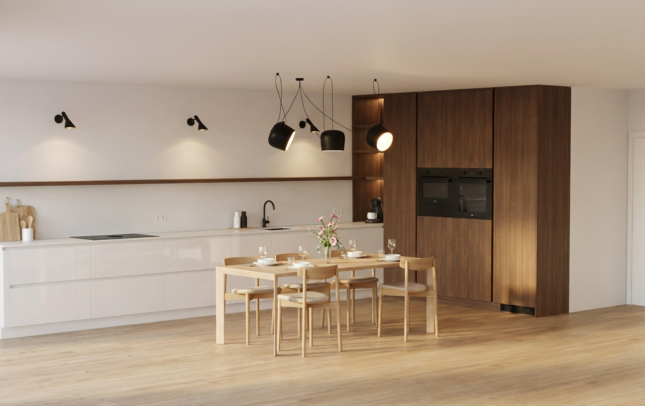 modernist exterior shot modern single story house beige walls with natural stone accents dark brown roof tiles large glass windows surrounded by lush green grass concrete patio warm afternoon sunlight clear blue sky serene and inviting atmosphere architecture