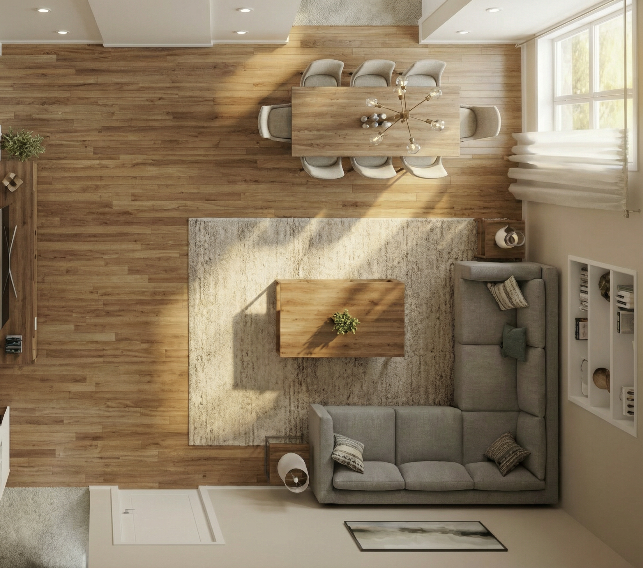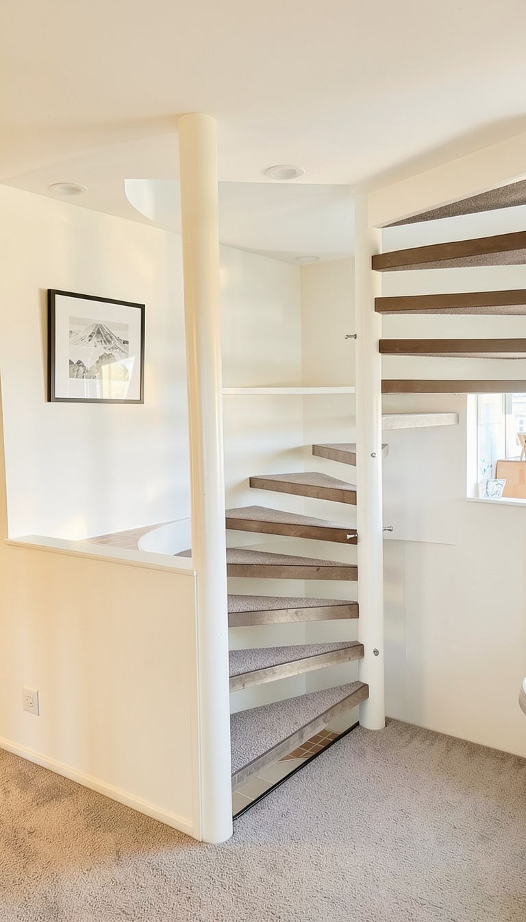 replace red and yellow walls with warm white replace carpet with loop pile wool replace stair treads with oak