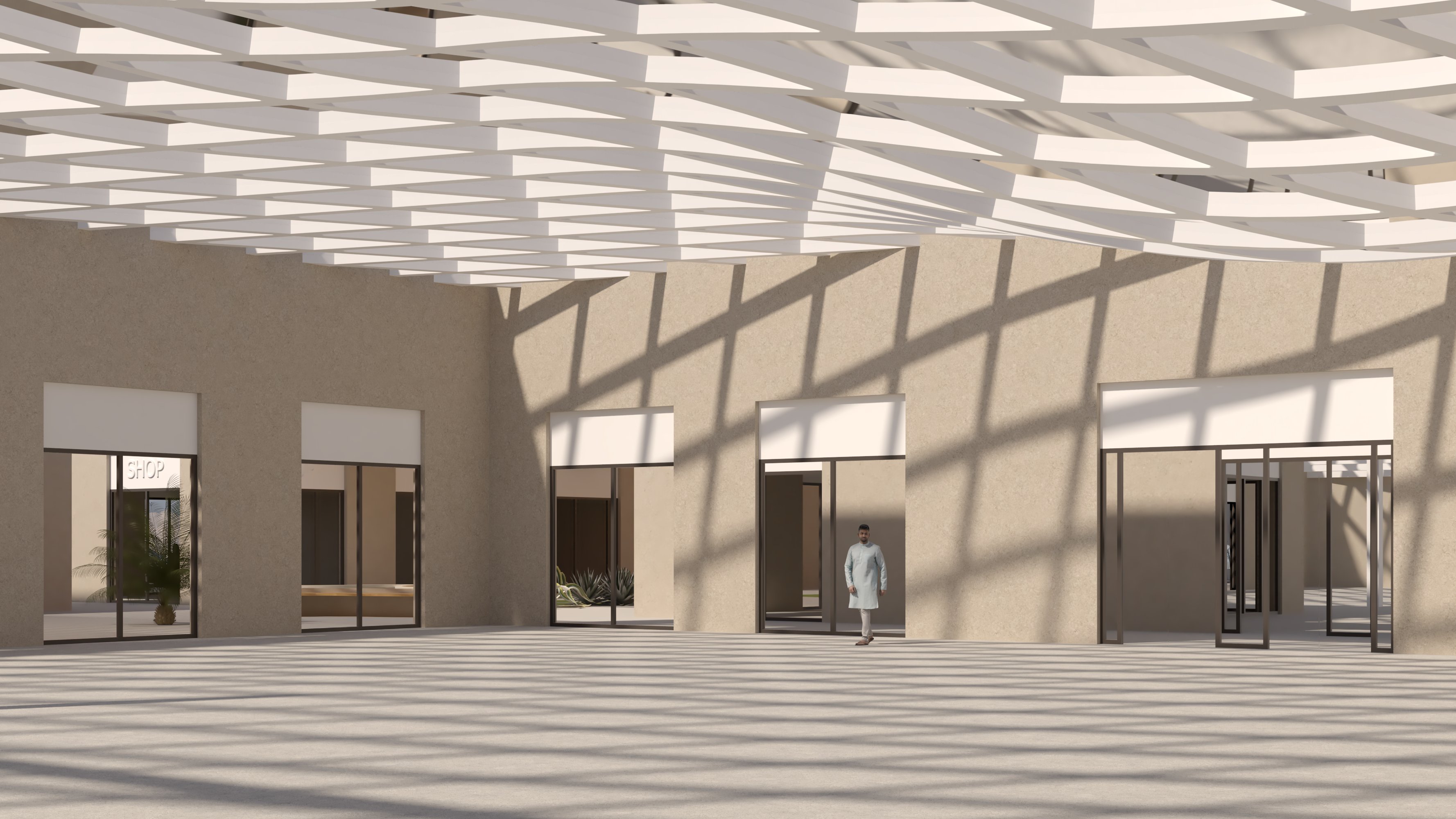 vibrant modern brand new fish market in an omani city people are selling freshly fished fish at the stalls and buyers from restaurants and local store are going around and buying the fish of their taste outside the windows people are walking by green areas and small palms are scattered along the path between the fish market and another commercial building