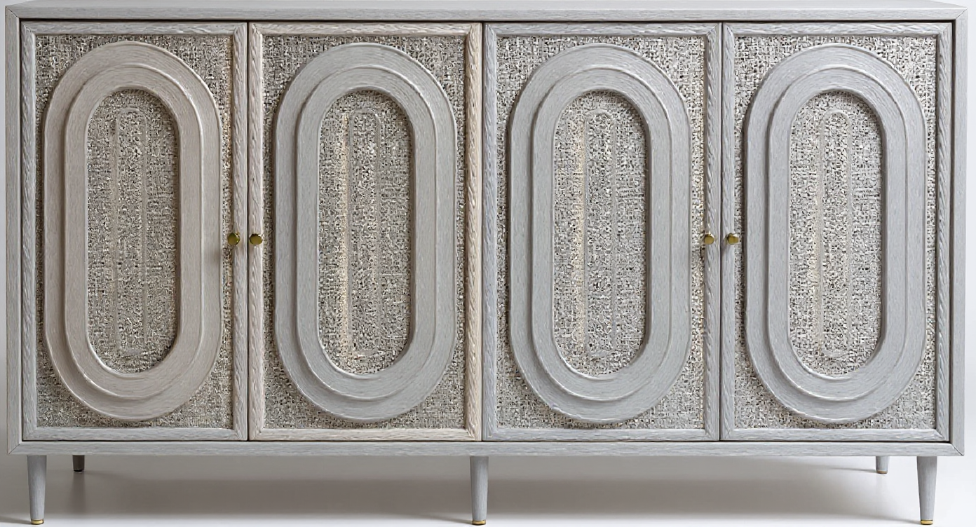 accent weaving cabinet doors in light ivory grayish finish light ivory grayish base legs top wire brush finish white background