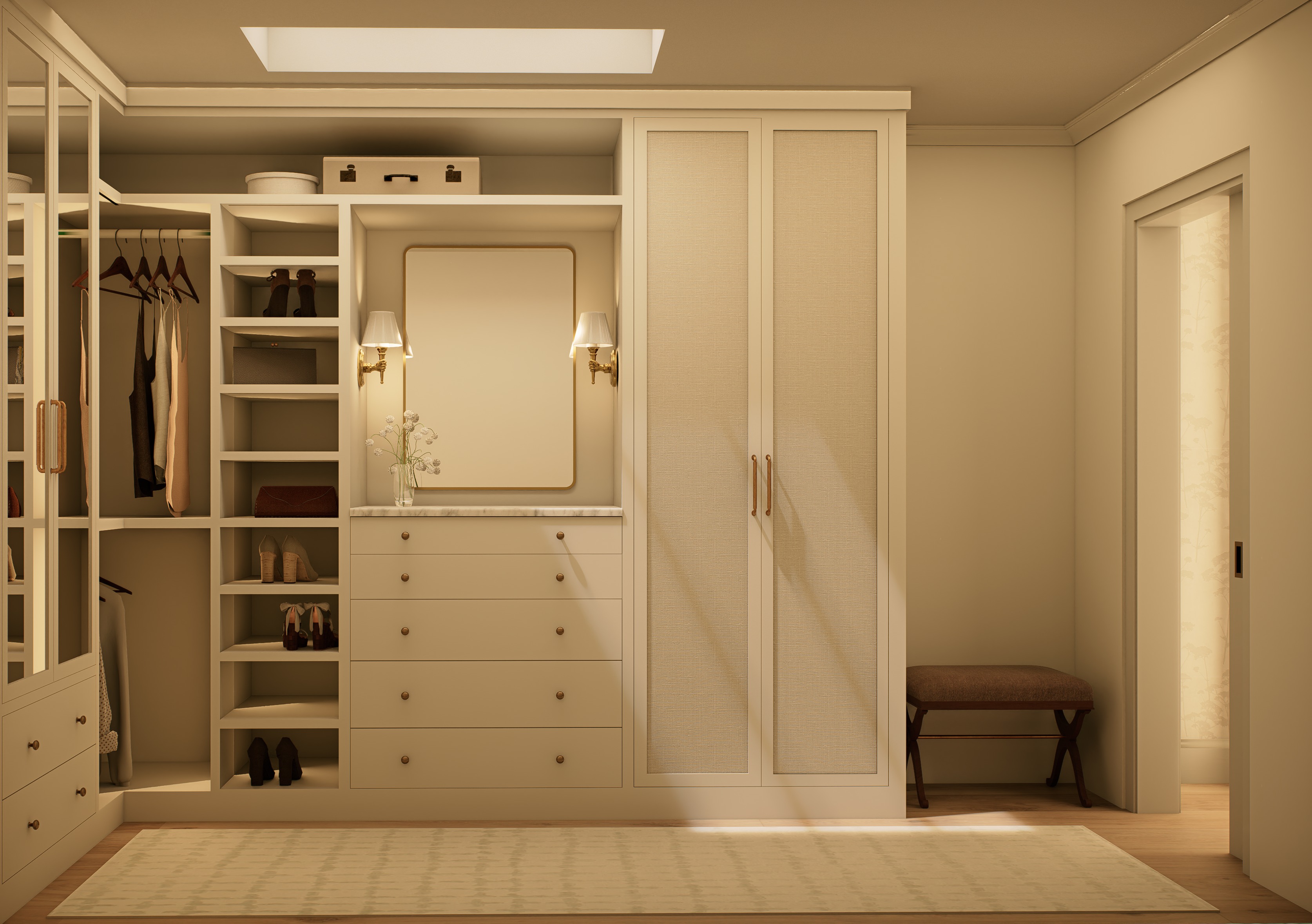 improve the realism of this rendering without changing any design details geometry proportions layout camera angle furniture placement or materials the image must remain identical in composition and structure only enhance the following texture resolution and realism fabric wood wallpaper rug metal natural fabric behavior soft folds compression at edges subtle wrinkles wood grain variation and depth material imperfections slight wear irregularities edge softness accurate roughness and reflectivity reduce overly glossy or flat surfaces glass realism subtle reflections slight distortion correct opacity global illumination and bounce lighting natural light behavior from windows soft falloff realistic exposure no clipping warmer more physically accurate color balance avoid yellow orange cast soft ambient shadows and stronger contact shadows where objects meet surfaces depth and atmospheric realism very subtle not foggy the result should look like a high end ultra photorealistic architectural photograph 4k quality while preserving the exact design intent and composition do not move resize replace redesign or reinterpret any elements