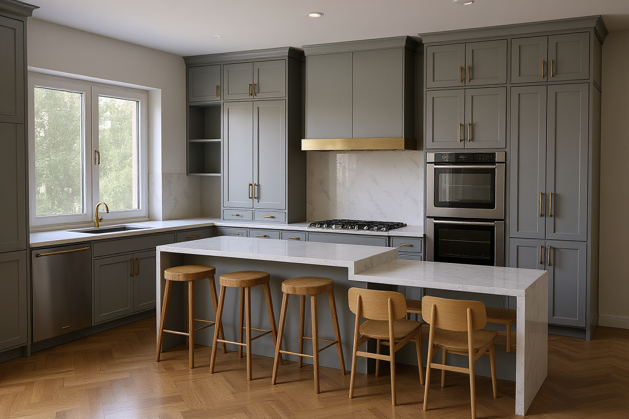 keep everything the same but change all the cabinetry to slim shaker