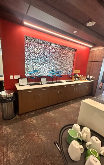 remove the red paint and replace it with a warm grey paint color remove the center panels and replace with black metal window frame panels with this pattern https tableaux com wp content uploads 2024 04 nova 202 jpg