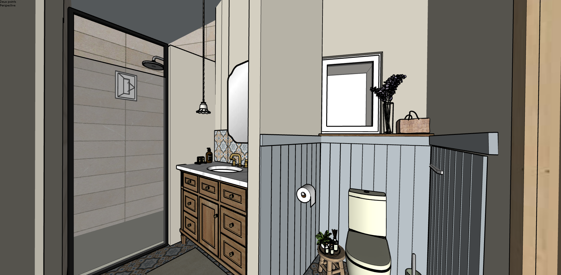 transform this sketchup model into a photorealistic architectural render keep the exact geometry proportions and layout and colors of the model materials realistic textures with natural imperfections wood grain stone texture matte paint lighting soft natural daylight coming from windows global illumination realistic shadows style high end contemporary interior design elegant and warm atmosphere add subtle details realistic reflections natural light bounce depth of field slight ambient occlusion camera architectural photography style wide angle 24mm eye level perspective render quality ultra realistic high resolution physically accurate lighting professional architectural visualization