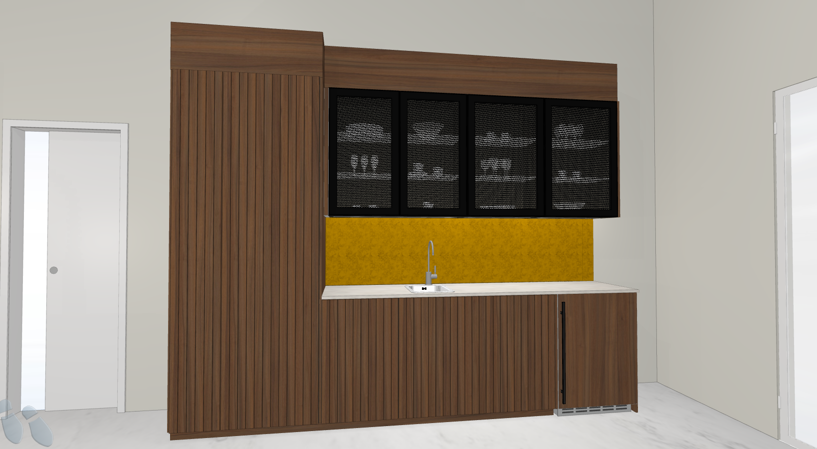 elegant bar with upper black cabinets with grid