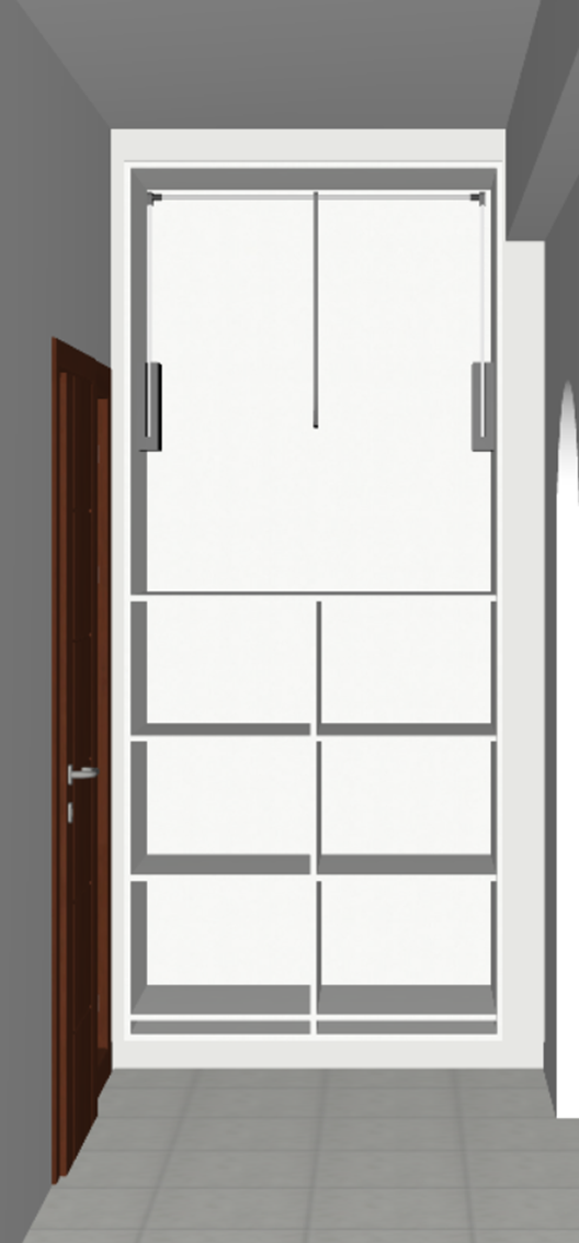 just a 3d render keep colours as it is add shoes on the shelves and clothes on top rail