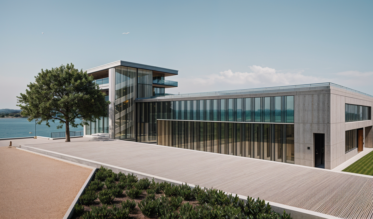 render a luxurious house floor plan with high detail use soft cream and beige tones for the walls a warm oak wood texture for the flooring and sleek modern gray for the accents highlight the kitchen with stainless steel elements add lush green to represent indoor plants strategically placed to add life introduce a cozy natural light atmosphere by incorporating sunlight streaming through large windows casting soft shadows the overall mood should convey elegance and modern comfort