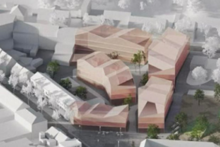 modern sports speedway center adaptive reuse of existing architectural complex dynamic geometry speed inspired architecture speedway stadium with oval track grandstands training halls speedway museum fan zones corten steel concrete glass urban context trees aerial view realistic architectural visualization