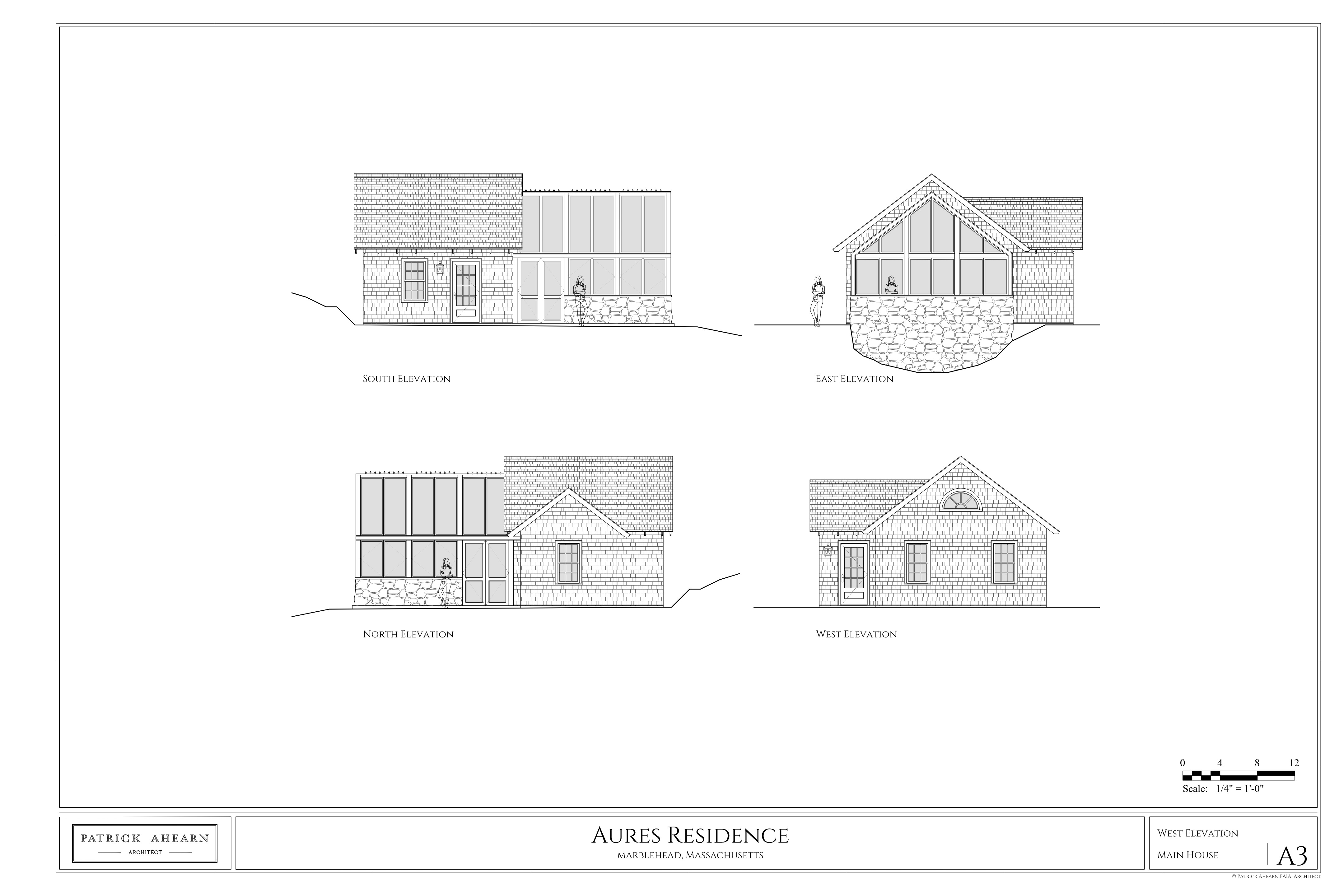 render this small weathered shingled cottage with attached glass and steel greenhouse tan and gray stone base trim and metal is dark green add plants to greenhouse add trees and sky