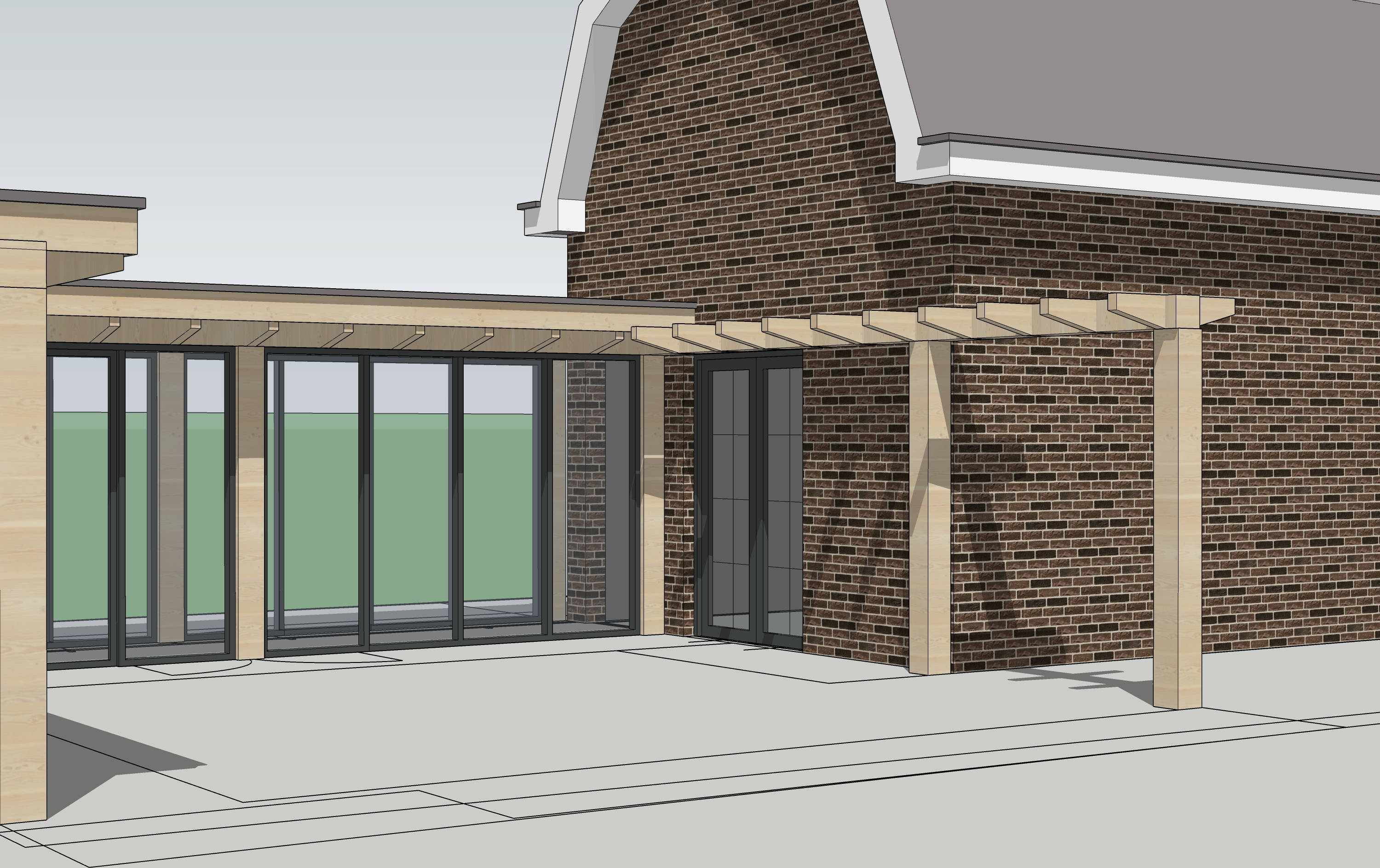 maak een groen tuin een loungehoek en verlichting in de luifel
