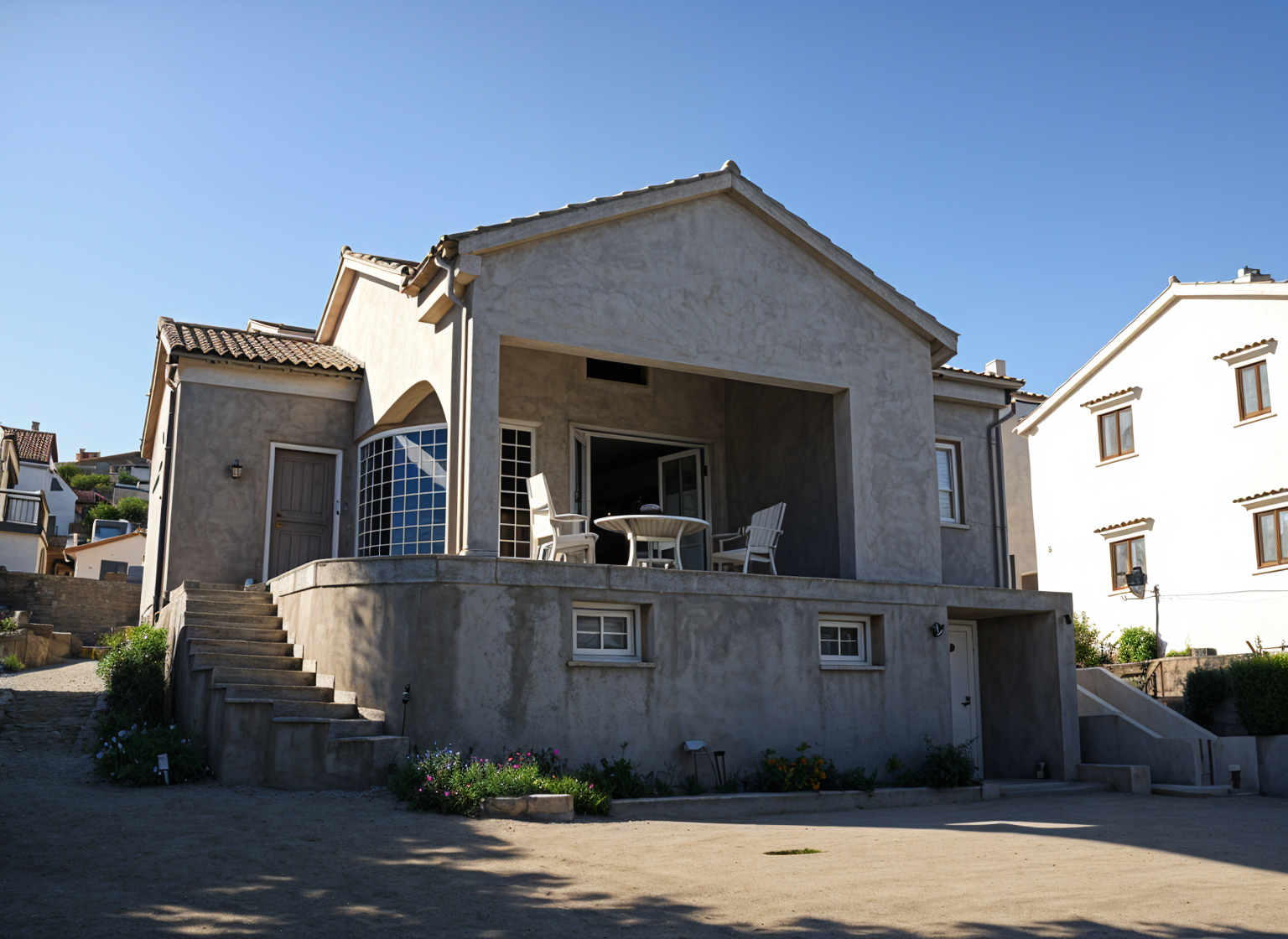 modernist exterior shot make this render more realistic dont add anything new to the render and dont change the shape of anything architecture
