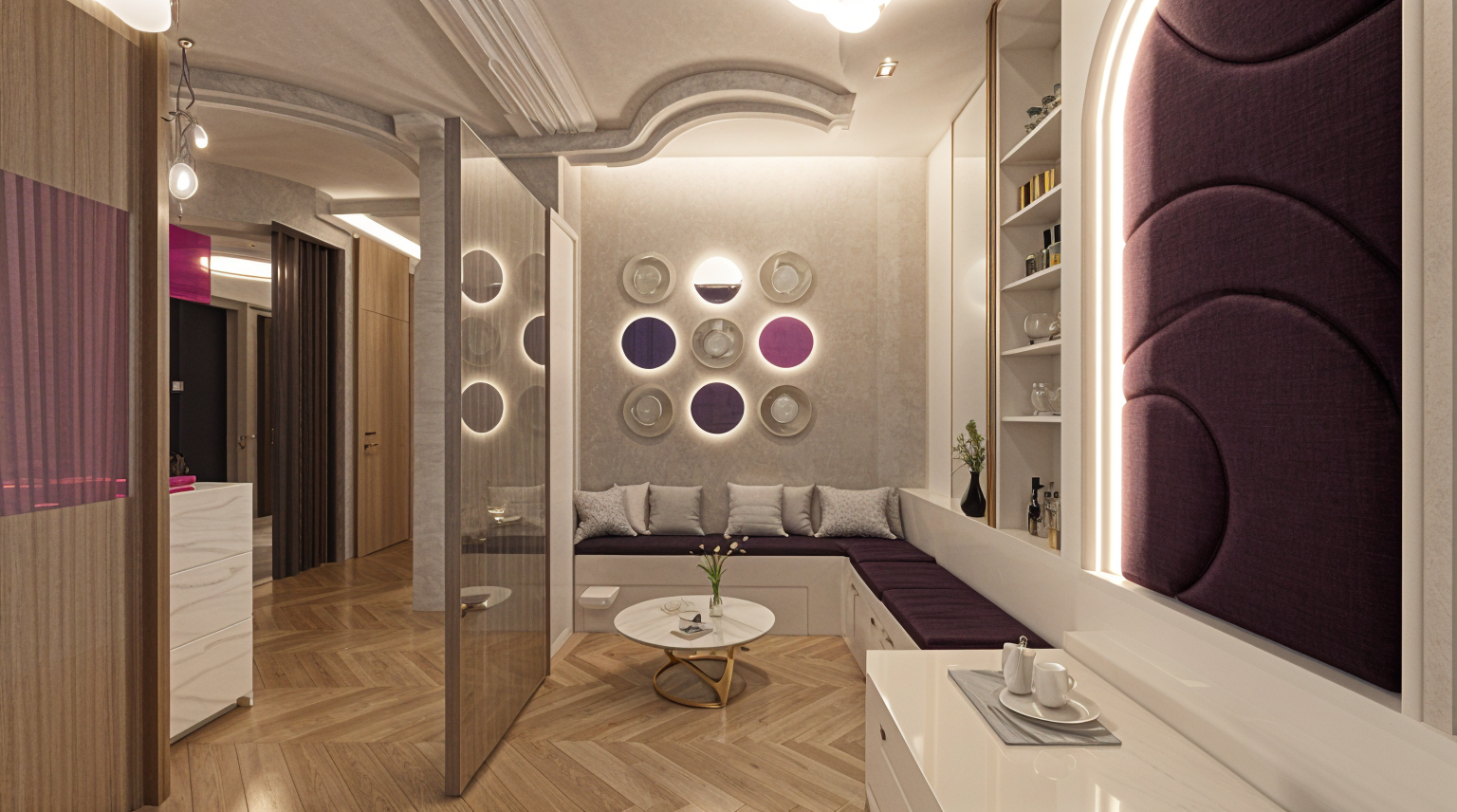 refine this interior rendering to match the lighting mood and color tone of a warm high end omakase environment maintain the exact composition geometry materials and furniture do not add remove or redesign any elements lighting adjustment reduce overall brightness and eliminate harsh or flat lighting introduce a warmer more ambient lighting tone soft golden warmth increase contrast slightly to create depth but keep transitions smooth and diffused emphasize indirect lighting and glow rather than direct illumination atmosphere mood shift the space toward a more intimate moody and evening like ambiance avoid overexposure especially on walls ceiling panels and floor create a calm immersive and softly lit environment consistent with luxury hospitality interiors color grading slightly desaturate bright whites and beige tones warm up the overall palette while keeping it neutral and refined ensure consistency with other renderings that use warm soft and cohesive tones material read do not change materials improve how materials respond to light fabrics should appear softer and more matte wood should feel richer and less reflective do not alter actual material types or colors only adjust how they are lit important constraints do not change layout architecture furniture or objects do not add lighting fixtures or decorative elements do not restyle the space only adjust lighting and atmosphere