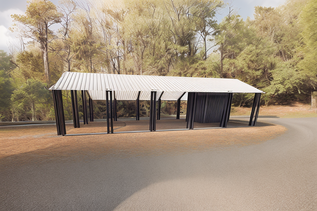 exterior shot make a collage style render od an outdoor pavilion