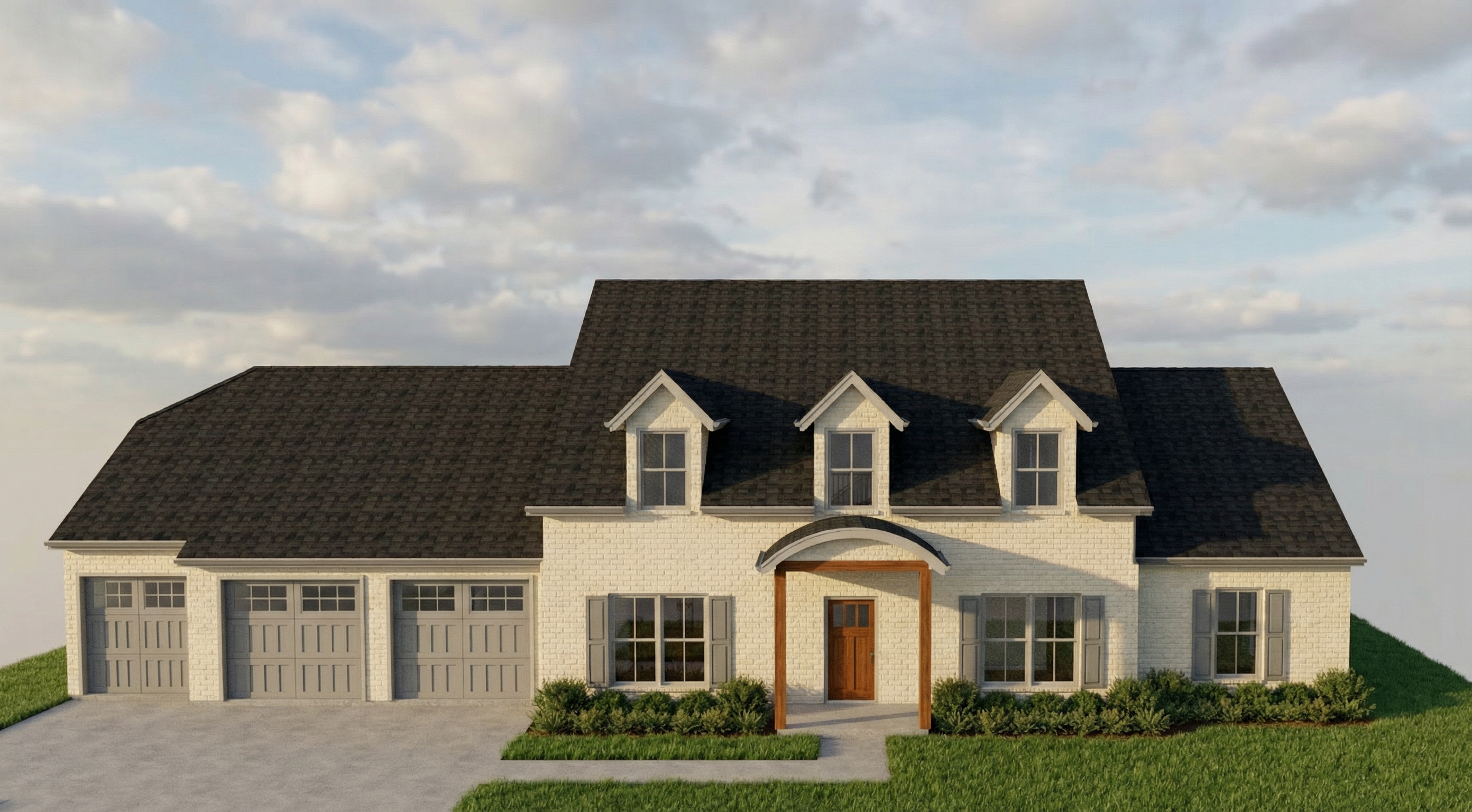 add summer and green landscaping in the windows also add concrete patio there are no windows behind the fireplace