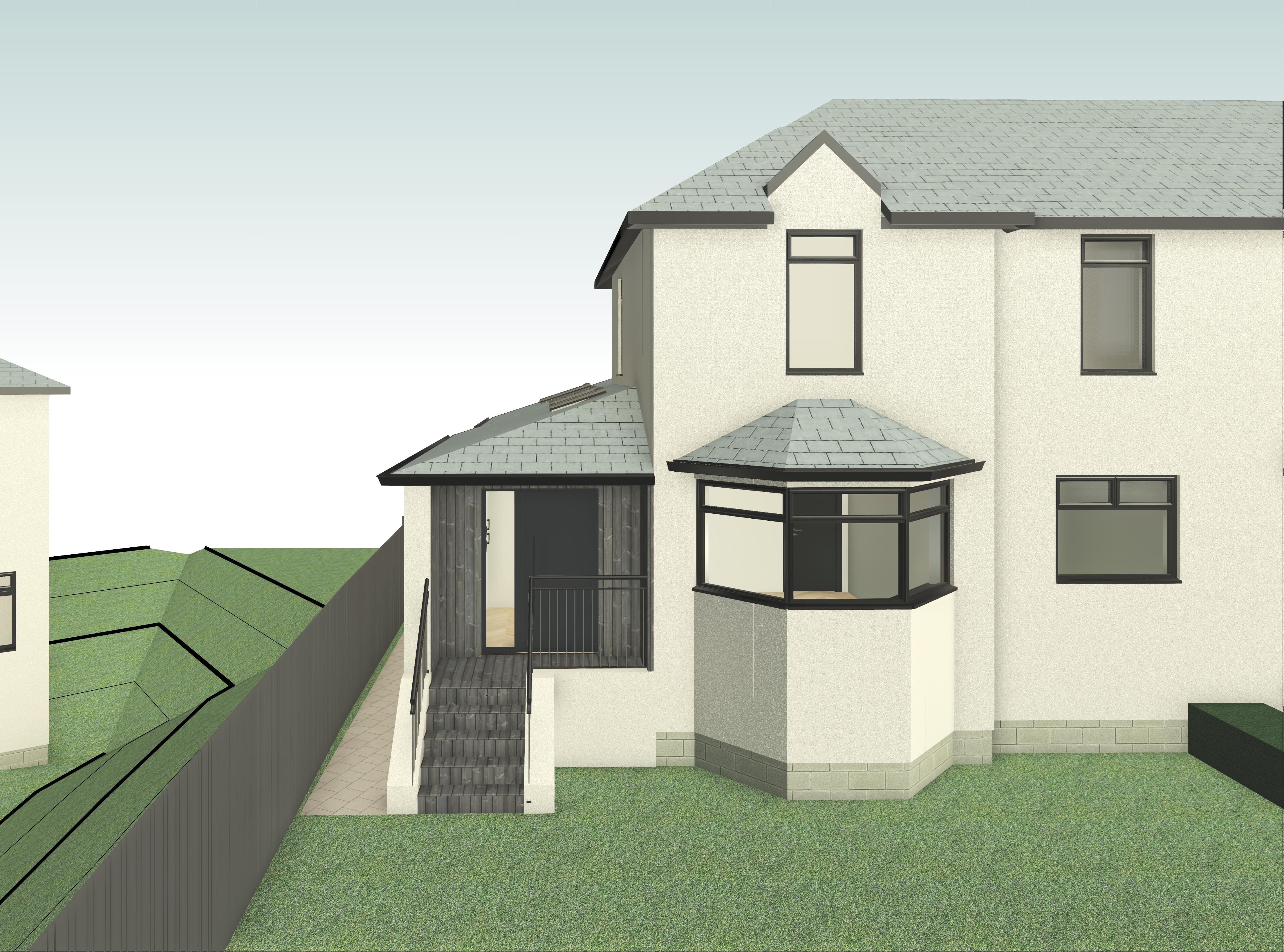 make grass and hedges realsistic make cream walls a render finsish add sky and trees in background