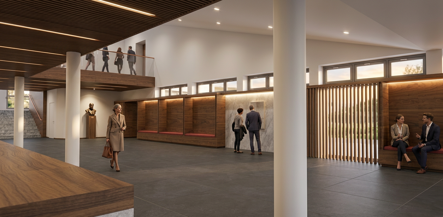 change the wood table to be black and change the armchairs to be modern black metal frame legs