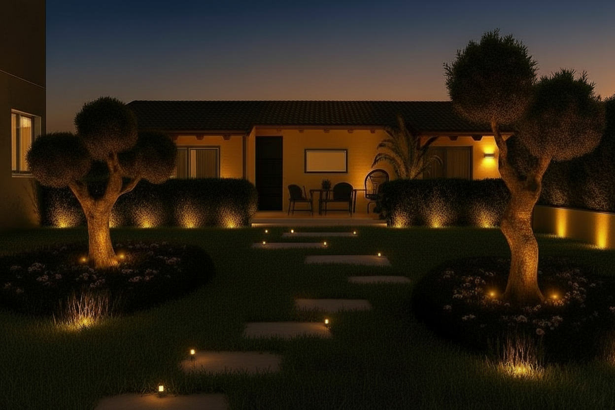 nhance the existing render by improving lighting quality and material textures only while preserving the original geometry layout proportions camera angle and composition exactly as they are refine the architectural lighting to achieve a modern elegant look improve light balance and contrast add subtle realistic soft shadows enhance indirect and ambient lighting keep all lighting warm and natural avoiding dramatic or stylized effects upgrade the house textures with higher realism and a modern finish without changing colors or materials increase stone or fa ade texture definition add subtle surface imperfections and depth improve material sharpness and realism maintain the original color palette and architectural style ensure all enhancements blend seamlessly with the existing image and lighting conditions do not add remove or move any architectural elements furniture trees people or landscape features no changes to time of day mood or environment only refinement and realism improvements final result should look like a higher quality professionally lit modern architectural render faithful to the original image