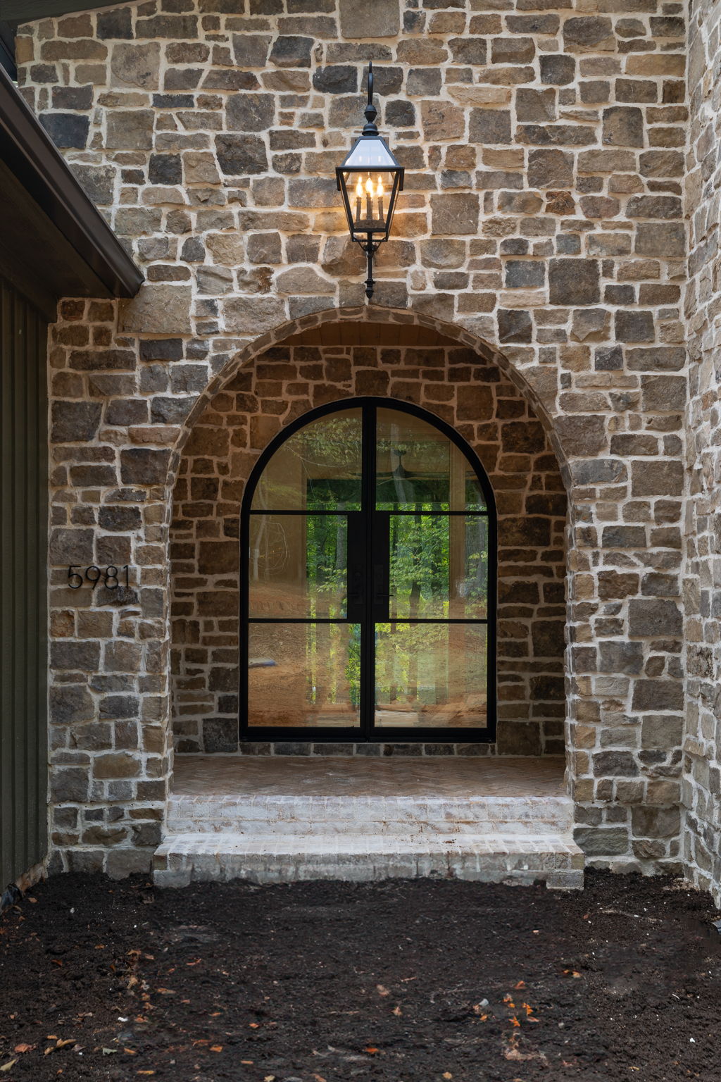 add stone sidewalk to the front door with professional landscaped planter on each side of the sidewalk