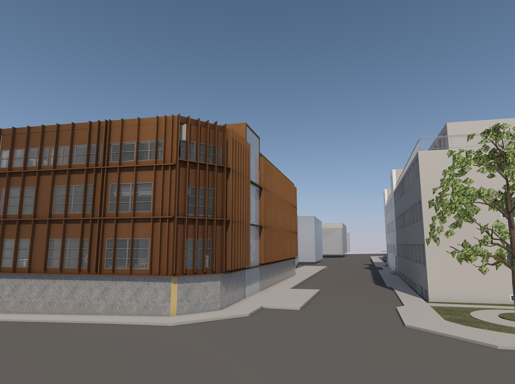 exterior shot sunny with clouds street life small er people