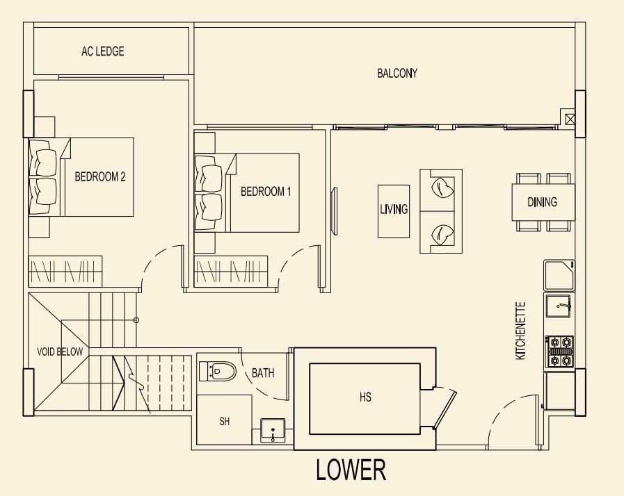 modernist interior shot this is the floor plan for the bottom floor of my penthouse unit help me create a modern interior design for it bedroom 1 is a room for a 16 year old boy with a gaming setup bedroom 2 is for a 20 year old girl architecture