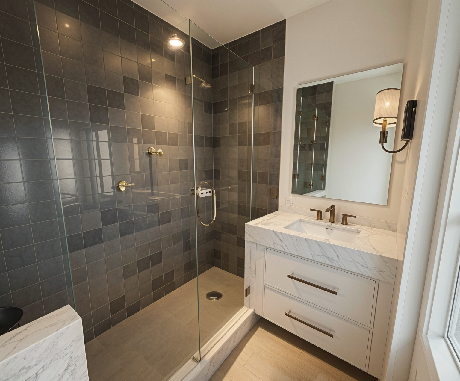 por favor genera una imagen fotorealista mejora texturas y elimina el ruido no modifiques el mobiliario el tejido de las sillas es mas liso blanco pero liso la lampara que hay sobre la mesa de comedor tambien es blanca el sillon de una plaza es verde musgo oscuro elimina la lampara que has puesto en el centro al fondo hay dos puertas y un cuadro con marco negro pero no se ve luz a traves