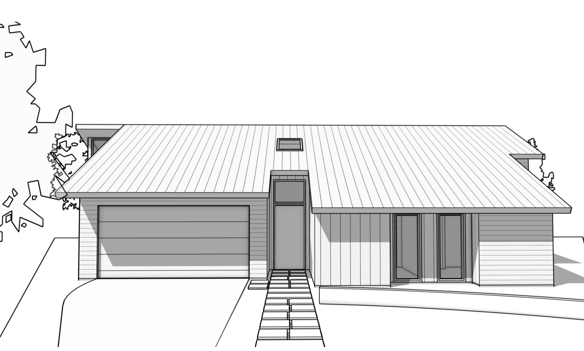 exterior shot white exterior light grey roof and garage lush and leafy front garden