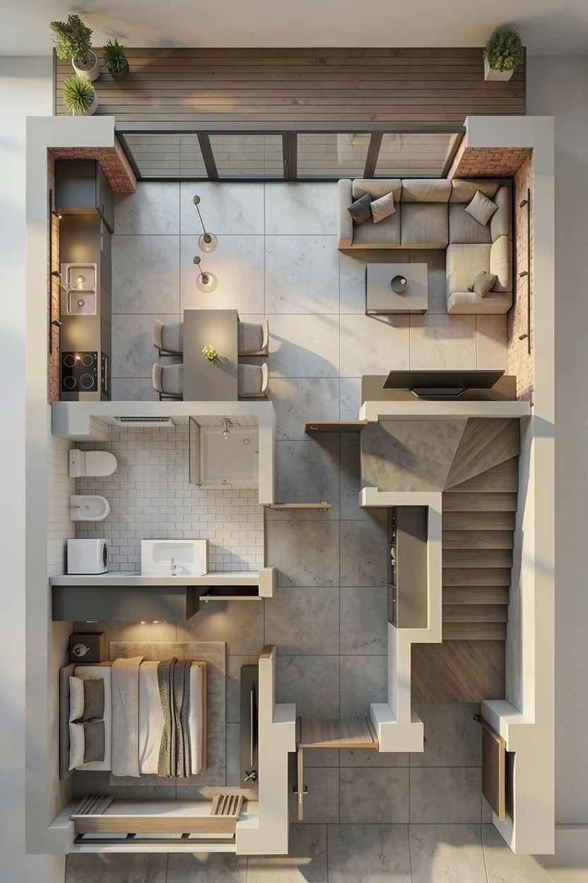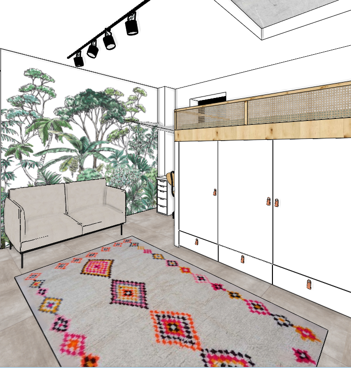 in the corner there s a net textile hanging between the wall and the loft bed the wardrobe doors are plain flat without a shaker frame keep everything else unchanged from previous render