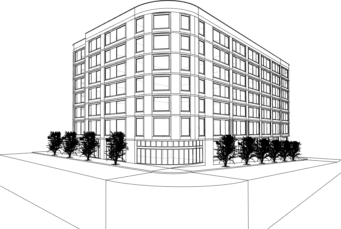 produce rendering of a warm gray brick building with contemporary brick detailing all lintels and sills should be a solider course warm gray brick windows should be black color industrial style