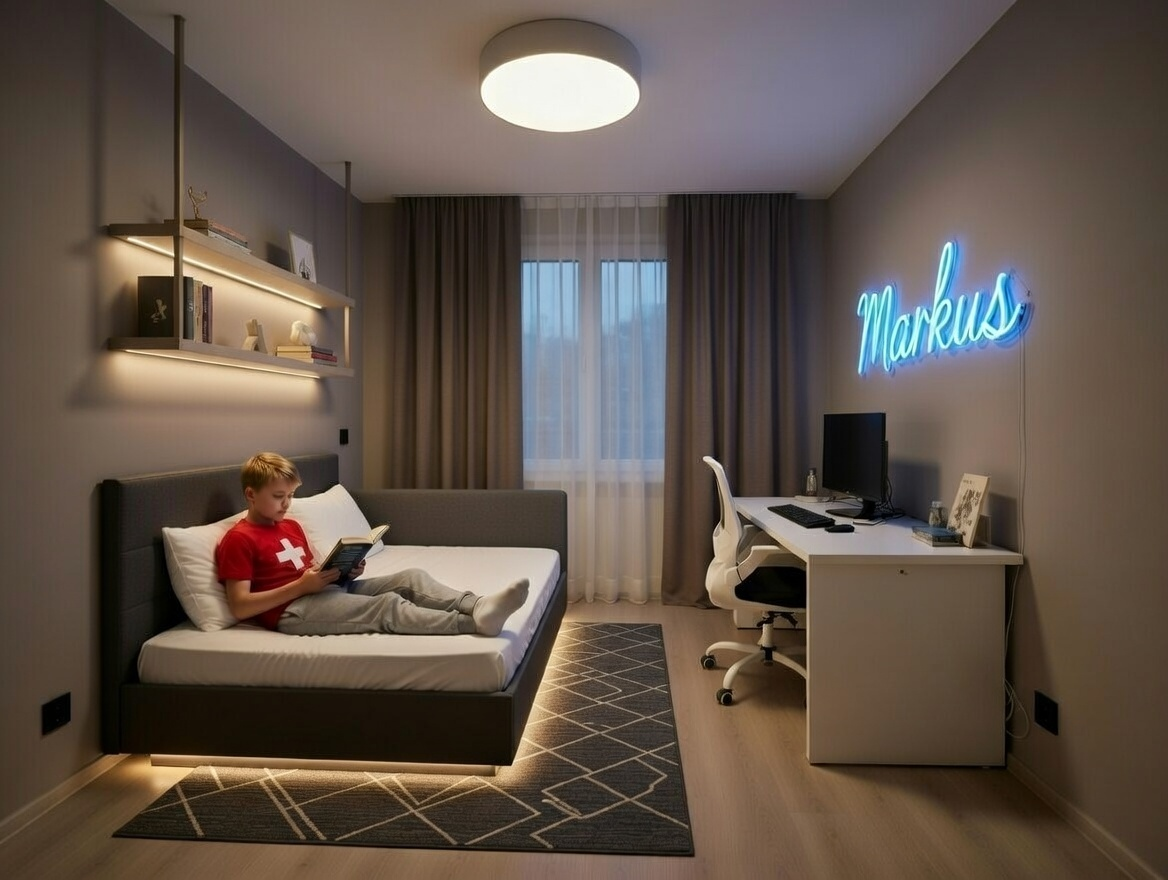 genau dieses rendering berarbeiten fotorealistisches innenraum foto exakt dieselbe perspektive und kameraposition wie das hochgeladene referenzbild 100 identische raumgeometrie vollfl chige horizontale jalousien ausserhalb der fenster raum zus tzlich k nstlich ausleuchten sanfte realistische schatten weiches nat rliches tageslicht mit schatten der jalousien an den w nden hochwertige oberfl chenreflexionen nat rliche farbwiedergabe golden hour feeling hell ausleuchten das bild muss wie eine professionelle fotografie aussehen es soll ein echtes und reales foto sein canon eos r5 35 mm festbrennweite f 2 8 hyperrealistisch dslr qualit t raw aufnahme 8k aufl sung extrem scharf perfekte tiefensch rfe professionelle architekturfotografie