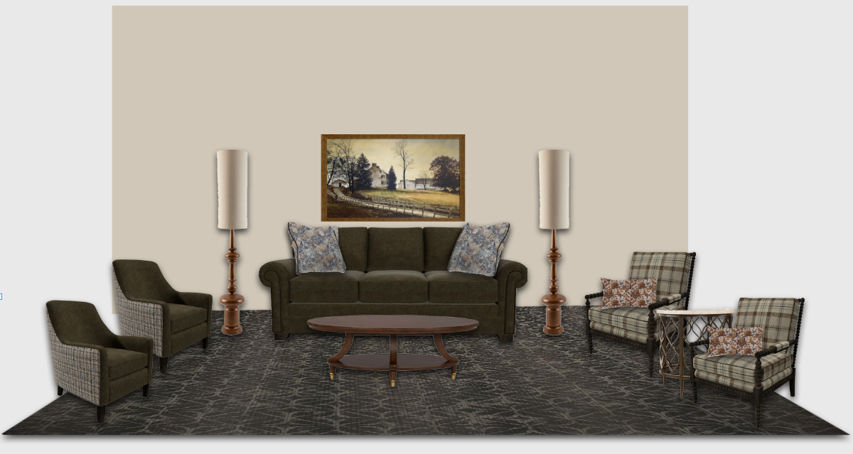 no windows add small flower arrangement on the coffee table