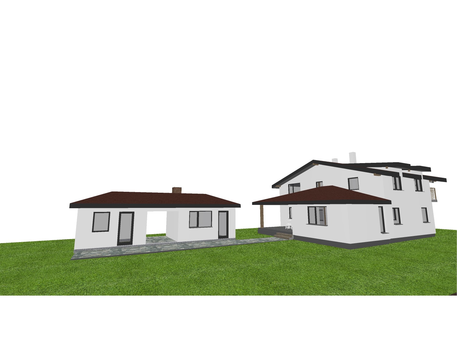 modernist exterior shot photorealistic architectural presentation rendering of a renovated traditional house and annex located in an authentic romanian rural village in the banat region the scene must feel alive warm and emotionally engaging not sterile camera positioned from inside the backyard garden looking toward the street and front boundary showing the transition from private modern garden to the rural village beyond the garden is modern minimalist but vibrant and natural fresh green lawn ornamental grasses moving gently in the wind small contemporary shrubs subtle gravel accents and soft shadow patterns add natural imperfections for realism at the front boundary include a modern minimalist fence with horizontal anthracite metal slats partially transparent allowing visual connection to the street and village beyond beyond the fence clearly show the authentic romanian rural street scene narrow asphalt or lightly worn rural road neighboring single story romanian village houses with traditional red ceramic tile roofs varied plaster colors white beige pale yellow light pastel tones visible utility poles and overhead cables wooden gates and fences distant trees orchards and open green fields realistic spacing between houses the main house and annex preserve their exact existing volumes roof geometry and openings no architectural changes only finish modernization walls finished in elegant light warm white plaster highly realistic texture roof covered with authentic red ceramic roof tiles detailed and realistic lighting is cinematic warm late afternoon golden hour sunlight strong directional sunlight creates long soft shadows depth and contrast sunlight illuminates the facade beautifully creating highlights and realistic reflections add subtle life elements to enhance realism slightly open gate light wind moving grass warm interior light glow visible subtly through windows a parked modest car partially visible on the street optional realistic european car natural environmental storytelling sky is dramatic but realistic blue sky with soft warm clouds golden sunlight atmosphere rendering must feel like professional architectural photography emotionally engaging and suitable for client presentation rendering quality requirements ultra photorealistic cinematic lighting global illumination ray tracing physically based rendering pbr materials high dynamic range strong depth and contrast architectural photography composition 4k resolution camera settings eye level perspective 35mm architectural lens slight depth of field professional framing mood and atmosphere warm welcoming lived in authentic romanian rural identity modern but respectful intervention premium architectural presentation quality architecture