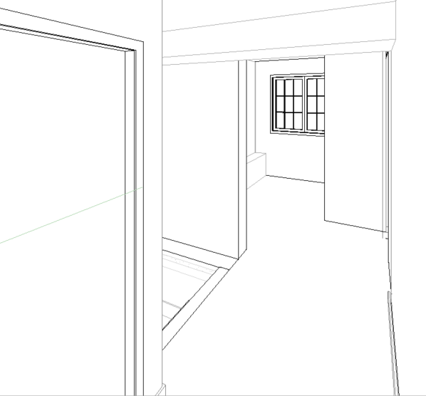 render floor with 18 x18 checkerboard marble that is light blue and cream checkerboard floor pattern walls painted in benjamin moore calm 2111 70 make door in foreground 2 raised panels add 6 high wall base throughout make cabinets beyond blue grey paint color make stairs going down to garage grey marble change checkerboard to be cream white marble and grey marble rotate checkerboard pattern 90 degrees add wainscott height trim throughout entire room and paint it white