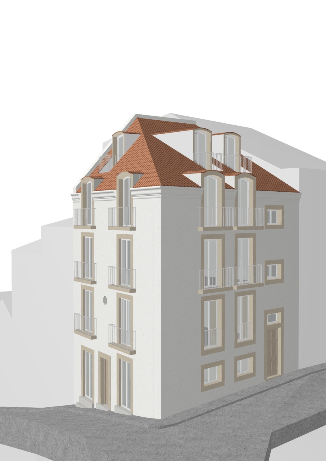 soft render of this facades white stucco stone frames around windows nice light atelier holcnerova