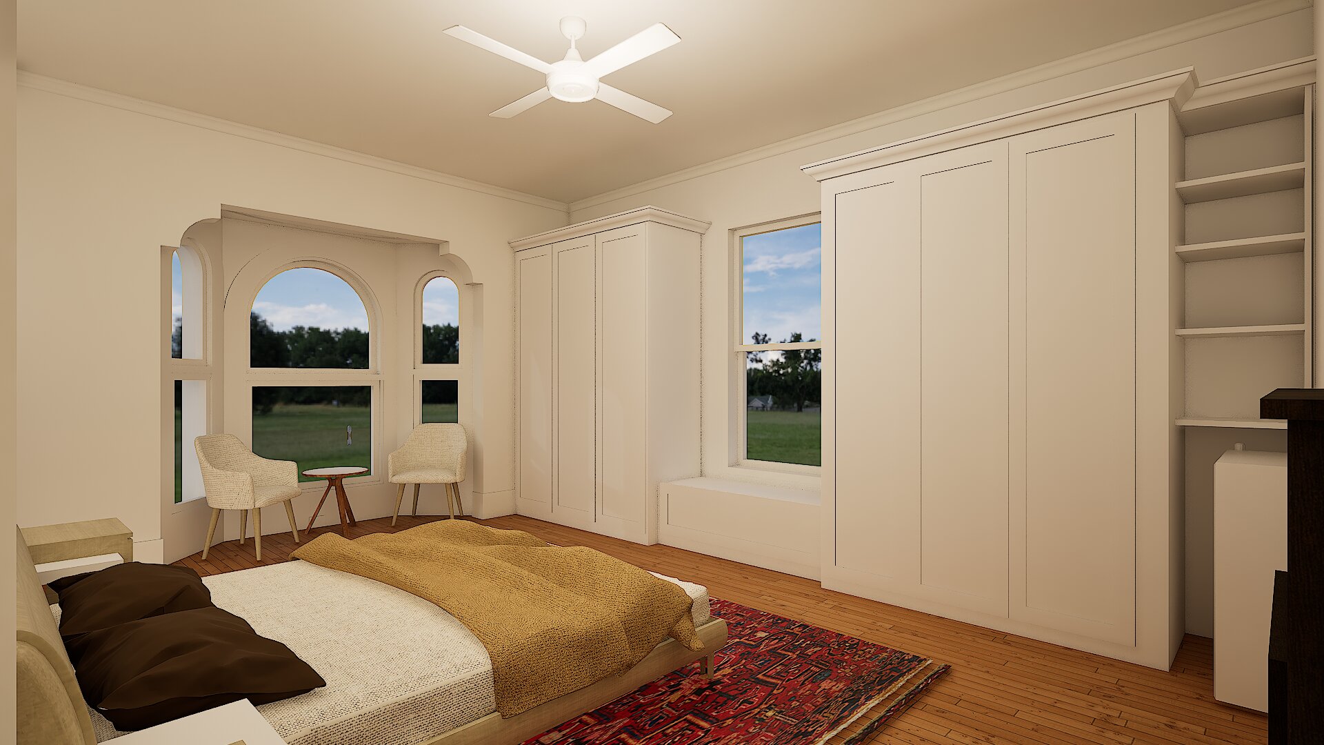 render realistically make it look like the 2nd story in historic neighborhood in downtown portland maine through windows